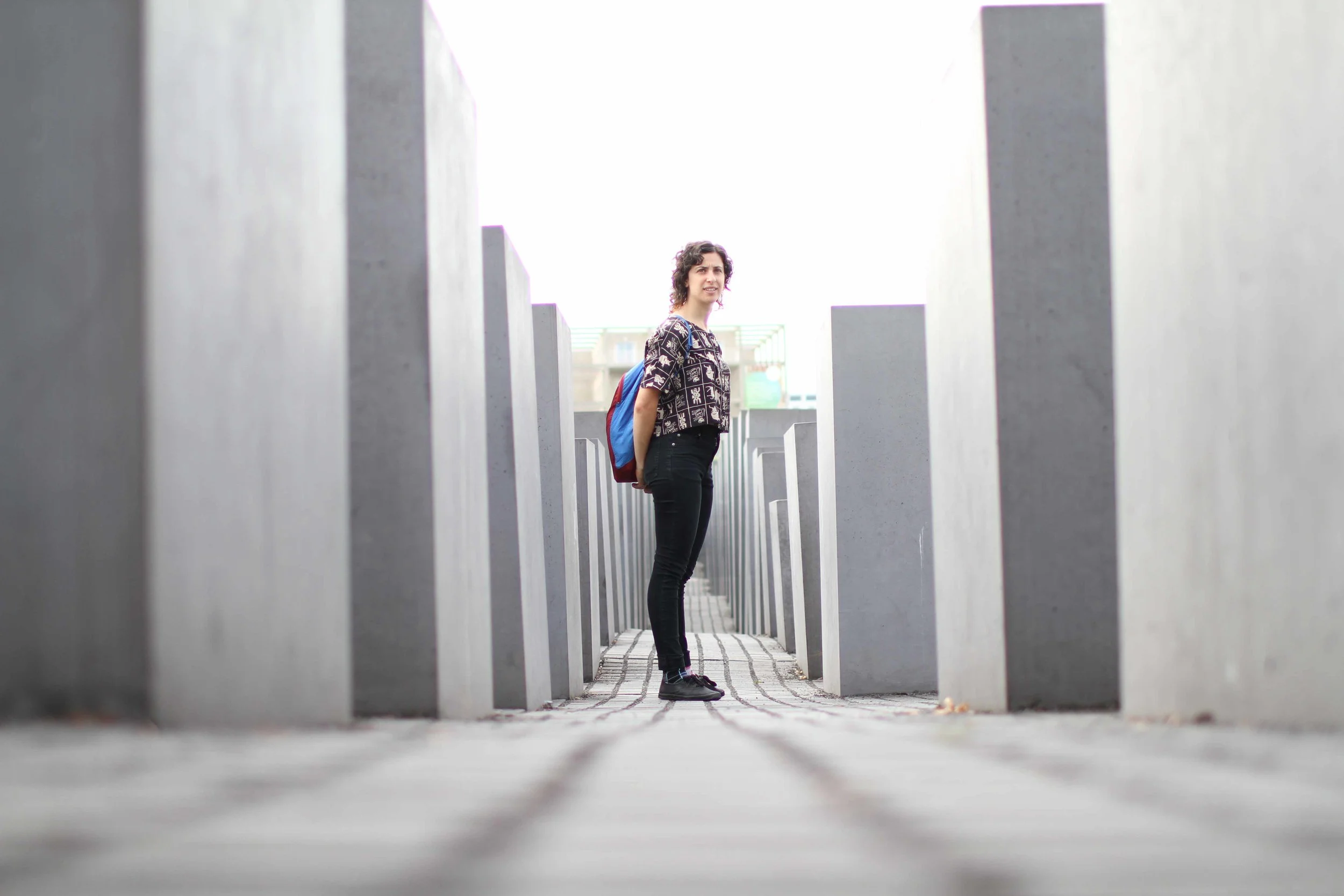 Standing in the Memorial to the Murdered Jews of Europe in Berlin. Meant to mimic grave stones, and erected in unending rows, you are forced you to move through the columns alone, meditating on the inconceivable horror of the Holocaust. —